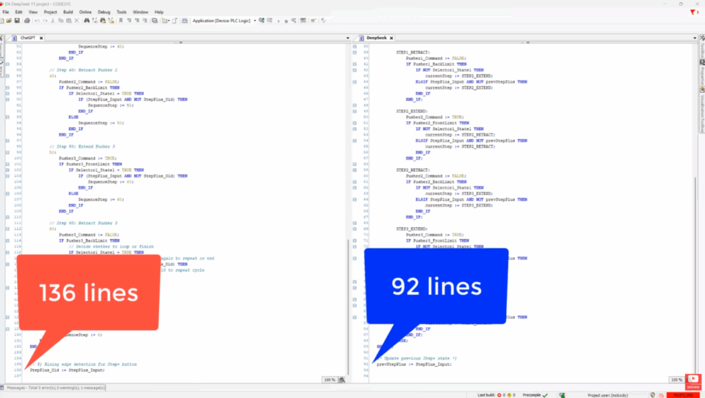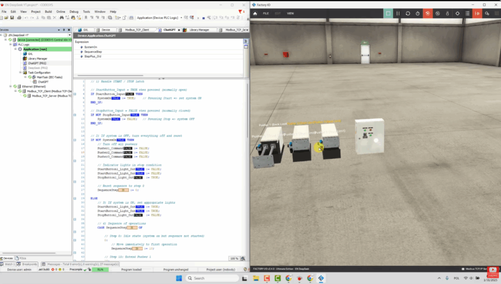 - AI potrafi generować w pełni działający kod PLC — łącznie z obsługą sekwencji, timerów i logiki krokowej.