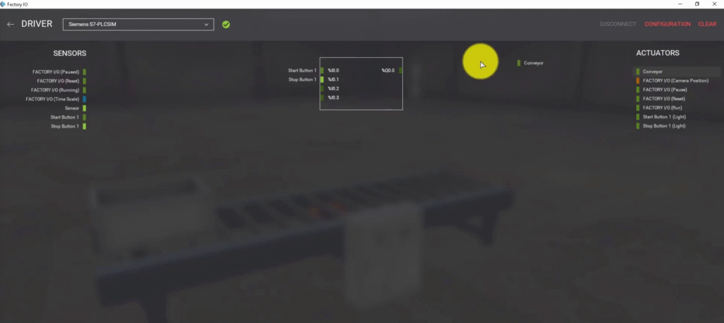 - W Factory I/O przejdź do FILE > Driver Configuration.