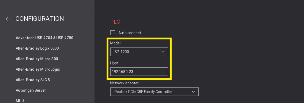 - Wybierz z listy sterowników Siemens S7-PLCSIM.