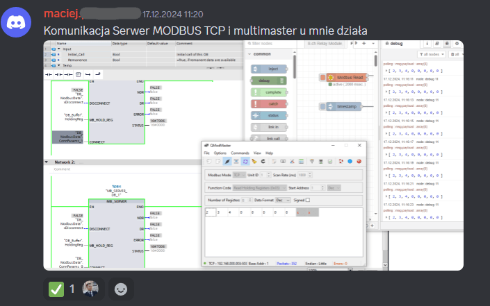 • Symulator: Zapytanie i odpowiedź MODBUS TCP