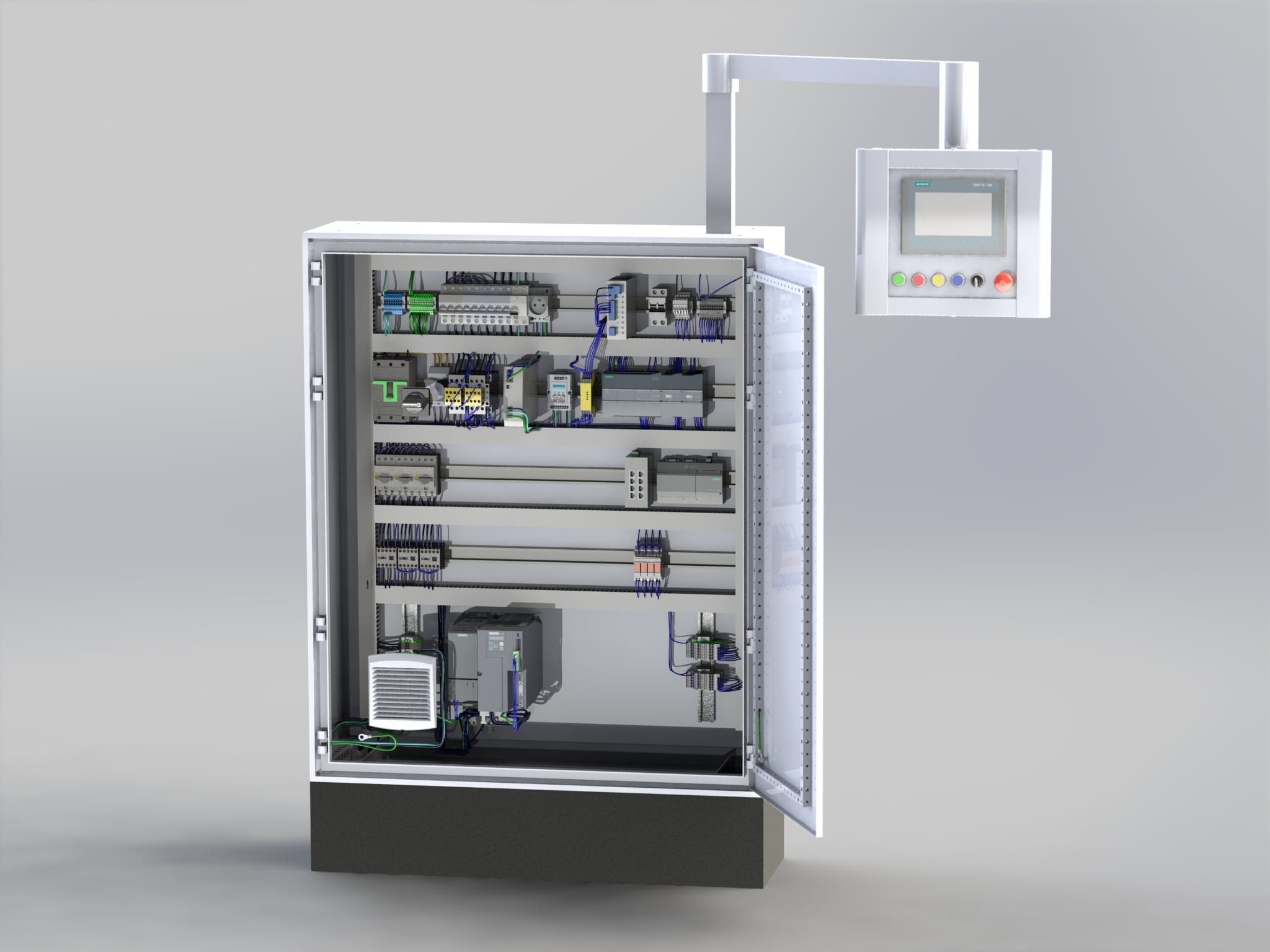 • Tworzenie złożenia 3D szafy sterowniczej w oparciu o schemat elektryczny