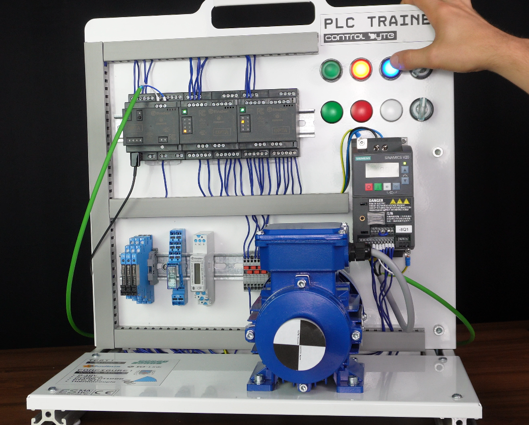 Sterownik Finder OPTA Codesys to programowalny przekaźnik logiczny, wyposażony w 8 wejść analogowo-cyfrowych i 4 wyjścia przekaźnikowe na pokładzie. Czytaj więcej o Finder OPTA. W tym artykule pokażemy, jak skonfigurować Finder OPTA z modułami EMR/SSR w środowisku CODESYS oraz jak napisać program do sterowania silnikiem przez falownik za pomocą cyfrowych sygnałów sterujących. Omówimy krok po kroku konfigurację sprzętu i oprogramowania, przedstawimy kod sterujący (zarówno w języku drabinkowym LD, jak i tekstowym ST) oraz zaprezentujemy prostą wizualizację do testowania działania programu.