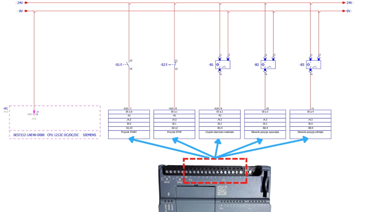 Wejścia PLC na schemacie elektrycznym – jak podłączyć