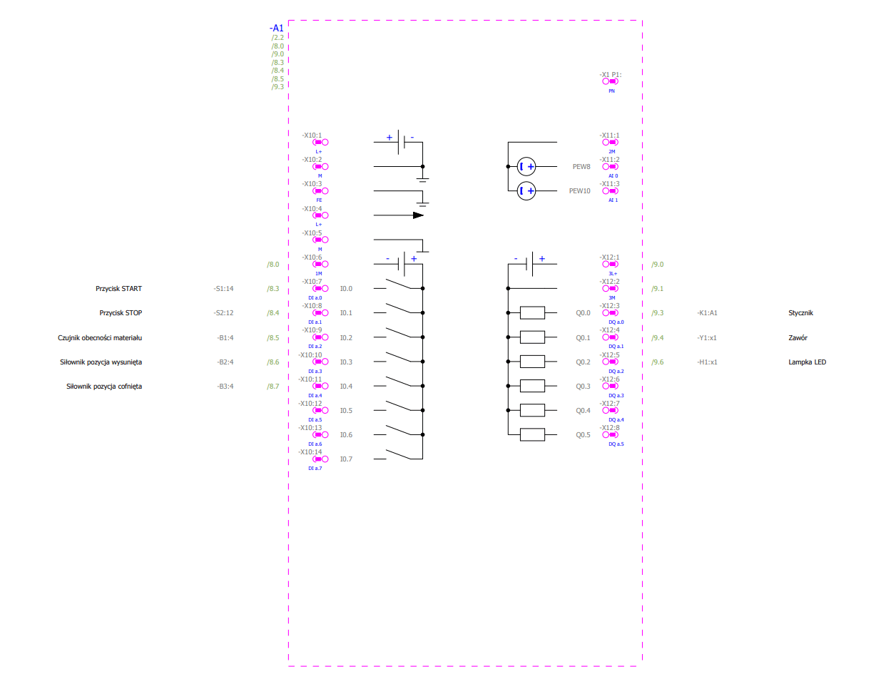 Połączenie sterownika – ta reprezentacja tworzona jest równoległe z poprzednią, pozbawiona jest jedynie zbędnych elementów, a zostały dodane połączenia.