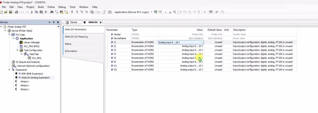 2. Konfiguracja wejść i wyjść analogowych w CODESYS