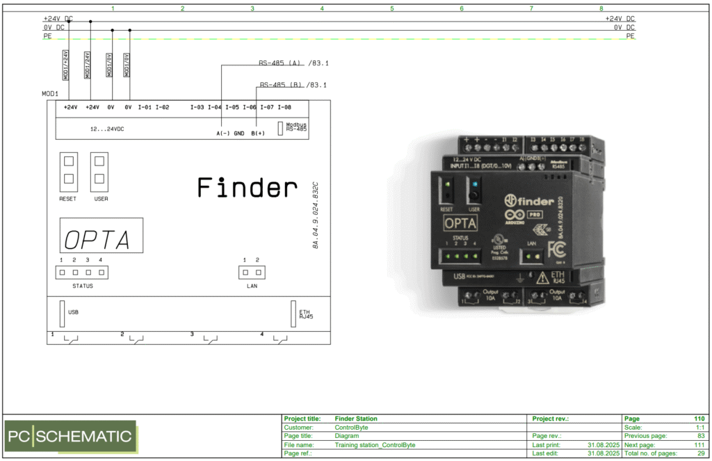 W tym artykule pokażę Ci, jak w sterowniku Finder Opta wykorzystać moduł rozszerzeń analogowych, aby odczytywać sygnał z potencjometru i sterować falownikiem w zakresie 0–10 V.