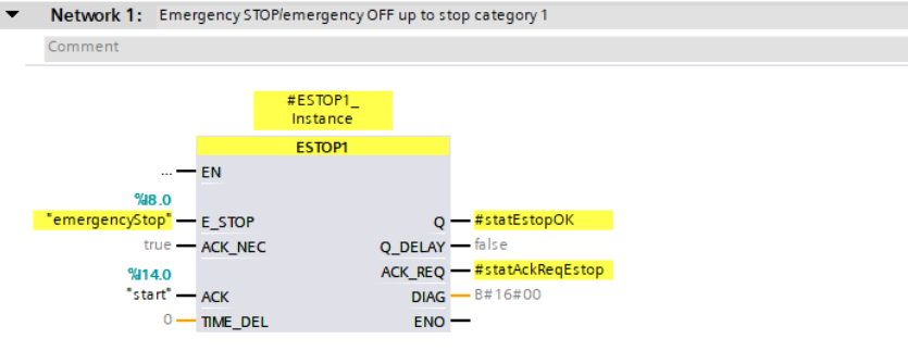 Siemens udostępnia w bibliotece Safety Integrated gotowe bloki funkcyjne, takie jak ESTOP1, które umożliwiają realizację funkcji zatrzymania awaryjnego w kategorii 0 i 1.