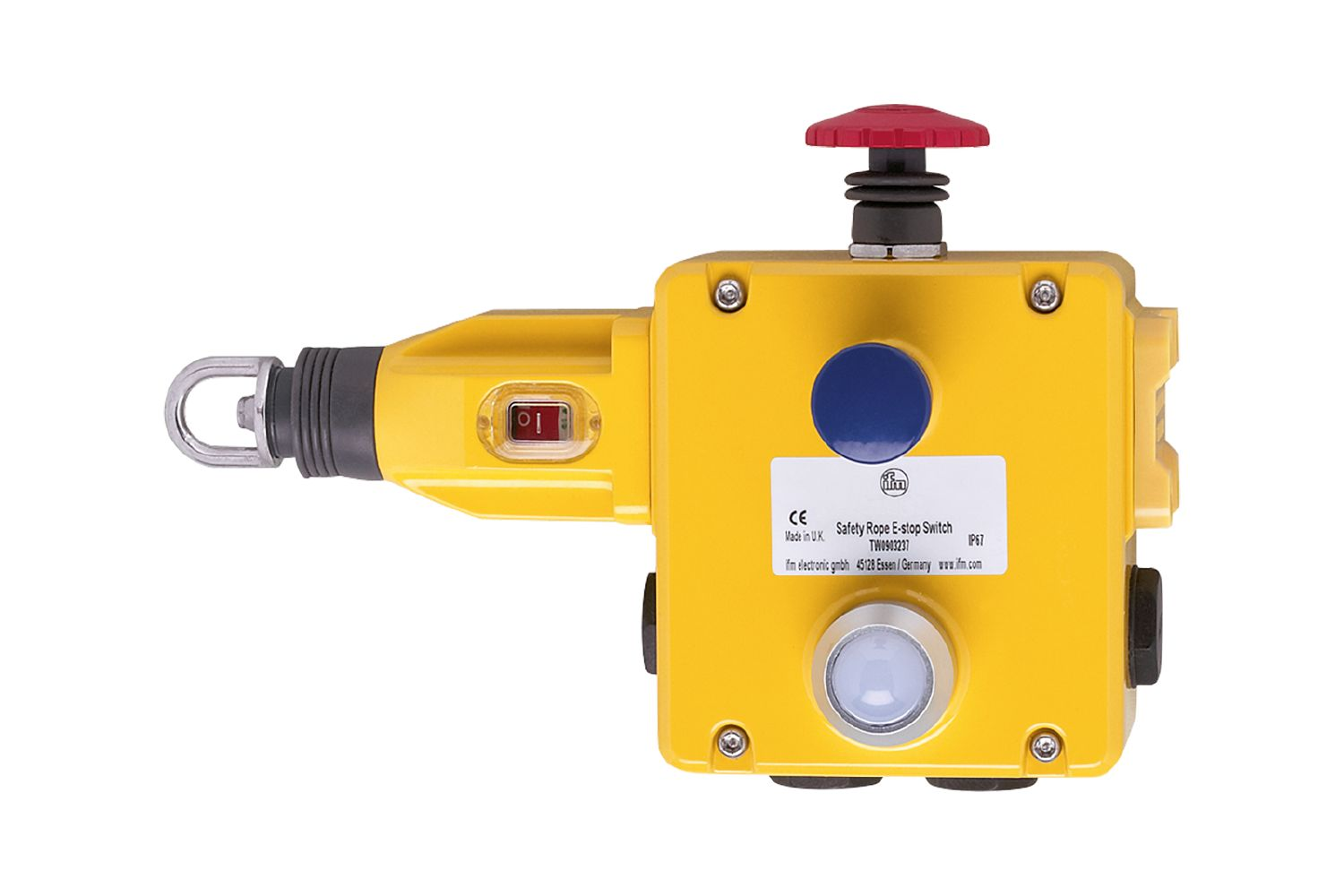 - czerwony przycisk grzybkowy z żółtym tłem, łatwo dostępny dla operatora,